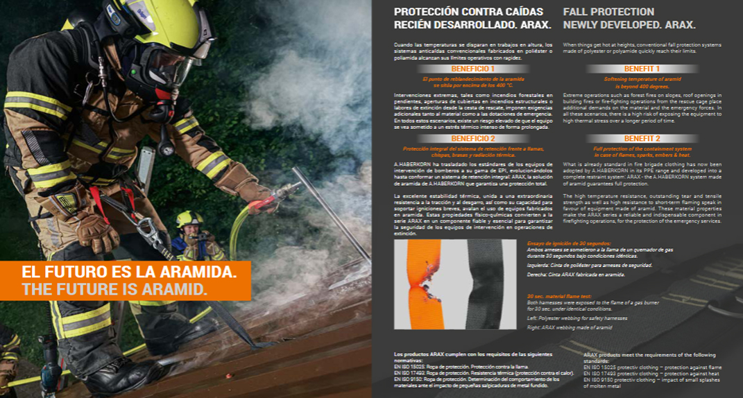 Nos especializamos en sistemas profesionales completos de protección contra caídas (EPI), cintas y cuerdas a medida para aplicaciones técnicas, tejidos redondos y mangueras para bomberos, industria y agricultura, y tejidos técnicos para componentes de automoción.